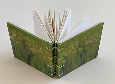 Softcover Coptic binding with painted cover (bottom photo shows inside cover with hand painted bookmark)