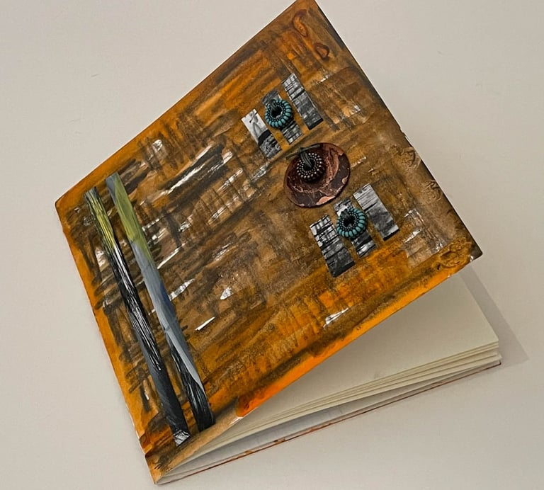 Accordion books with collage and Frottage details